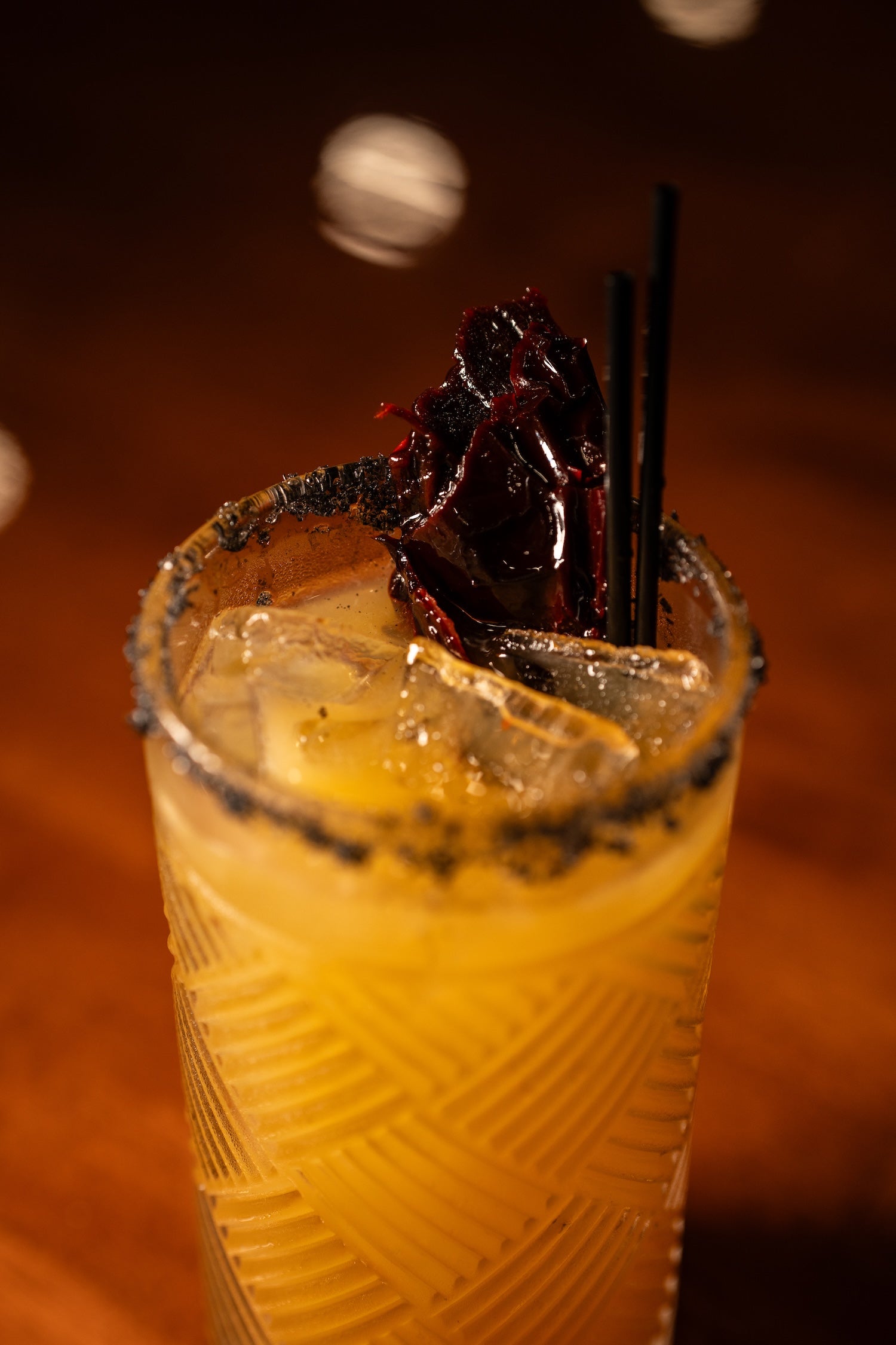 Tequila, chile ancho syrup, cinnamon infusion, orange juice.